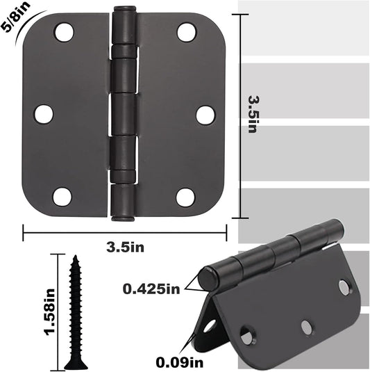 3-Pack Matte Black Interior Door Hinges with Rounded Corners - 3.5" x 3.5" - Ideal for Furniture