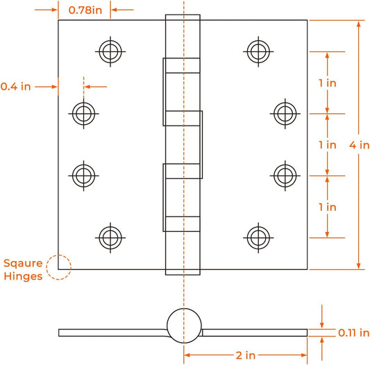 3PACK Heavy-Duty 4'' Matte Black 304 Stainless Steel Ball Bearing Door Hinges for Exterior Doors