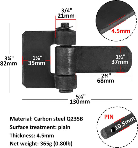 6 Pack Heavy Duty Weld-On Trailer Gate Hinges, 5-1/8" x 3-1/4", Long Leaf Strap Style, 11/64" Thick