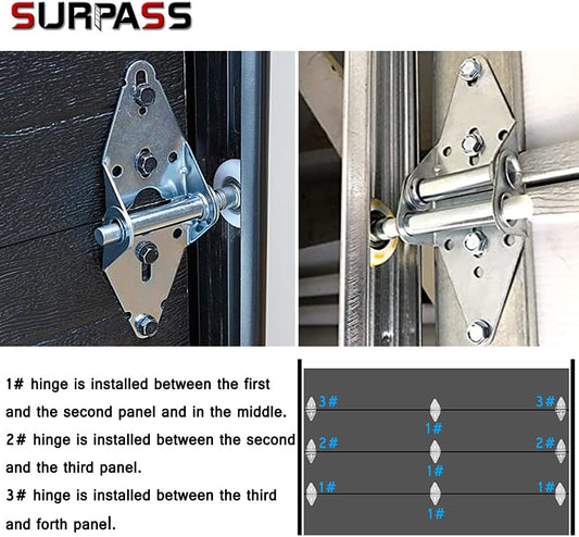 8PCS Heavy Duty 16 Gauge Steel Garage Door Hinges with Galvanized Finish for Residential/Light Commercial Garage Door Replacement