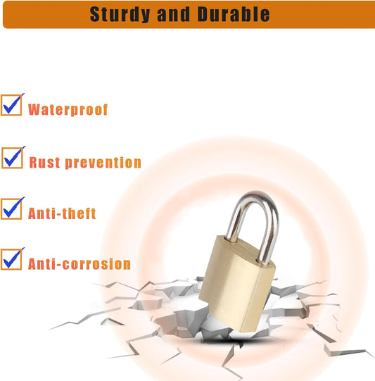 10-Pack Small Solid Brass Padlocks Keyed Alike - Mini Locks for Suitcases, Backpacks, Tool Boxes - 3/4" Wide Lock Body - Ideal for School Lockers and More