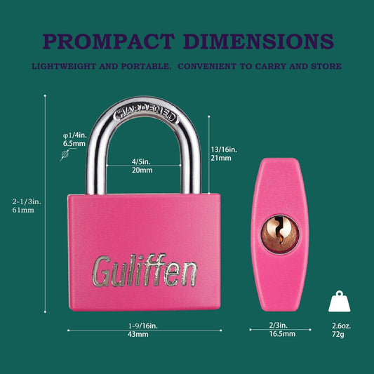 2 Pack Aluminum Key Locks for Gym Locker, Shed, Gate, Storage Unit - 1-9/16 in. Wide Lock Body - Guliffen Pad Locks