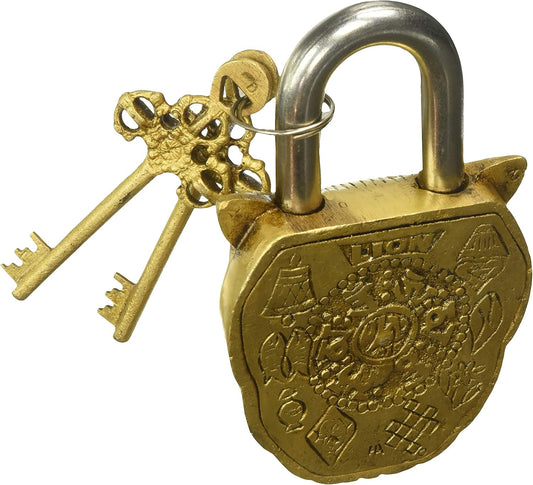 Handcrafted Brass Lion Shaped Lock for Security - Antique Style (10004) by Purpledip
