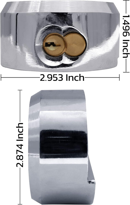 NU-Set 2-7/8" Heavy Duty Solid Steel Hockey Puck Padlock with Hidden Shackle Design, Chrome Finish, 5373-3