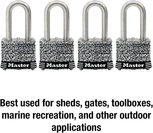 Set of 4 Master Lock Stainless Steel Outdoor Padlocks with Key, Keyed Alike - Silver