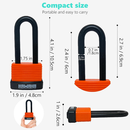 Waterproof Long Shackle Aluminum Padlock Set (92/40L-2P) with Keys - Ideal for Garage, Fence, Shed, Yard - Ultralight and Keyed Alike - Aluminum Body with Thermoplastic Case - Outdoor Use (1.75 in.)