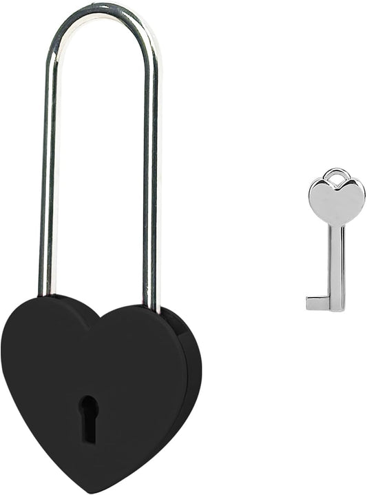 Heart Lock with Key - 3.5" Black/Red Love Padlock for Lovelock Bridge, Jewelry Box - Matte Metal, 50mm
