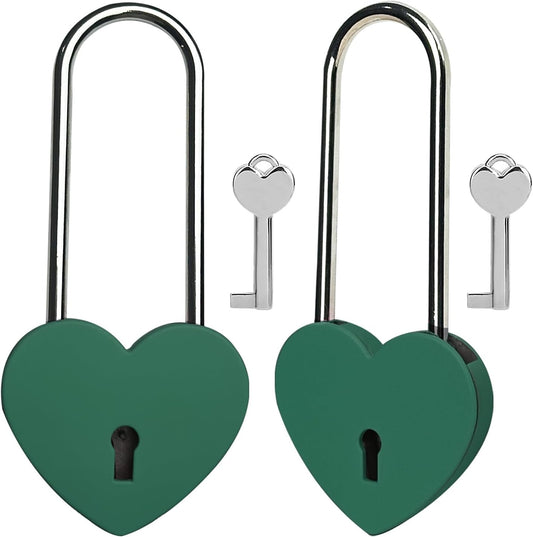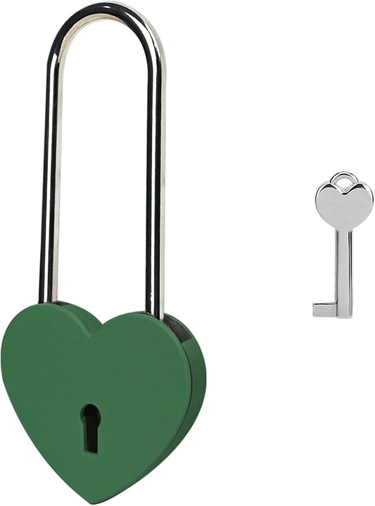 3.5 Inch Heart Lock with Key - Green/Yellow Matte Metal Love Padlock for Lovelock Bridge, Jewelry Box, Diary Book - 50mm