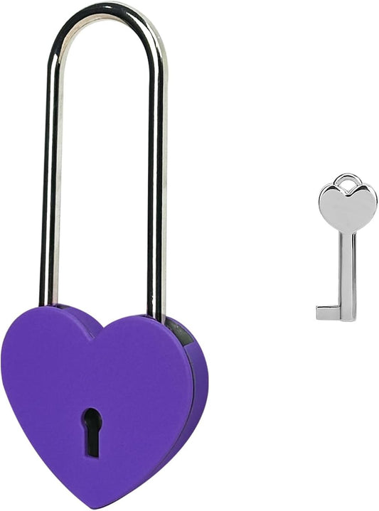 Purple and Yellow 3.5" Heart Lock with Key - Matte Metal Love Padlock for Lovelock Bridge, Jewelry Box, Diary - 50mm
