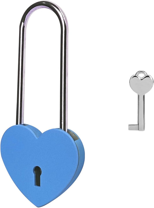 Heart Lock with Key, Pink and Blue 3.5" Love Padlock for Lovelock Bridge or Jewelry Box