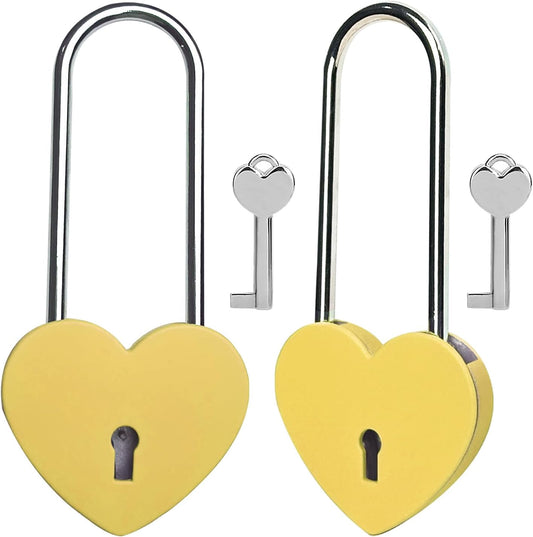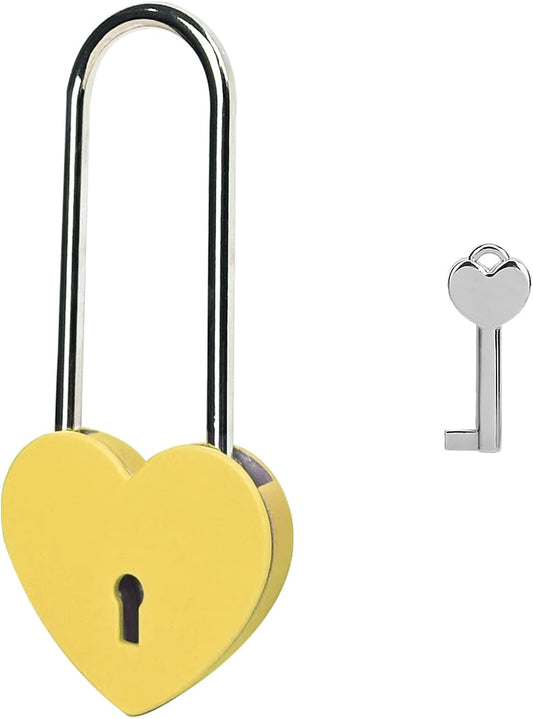 Heart Lock with Key, 3.5" Love Padlock in Yellow and Rose Red Rubber Painting Metal - Ideal for Lovelock Bridge, Jewelry Box, Diary Book, Card Box