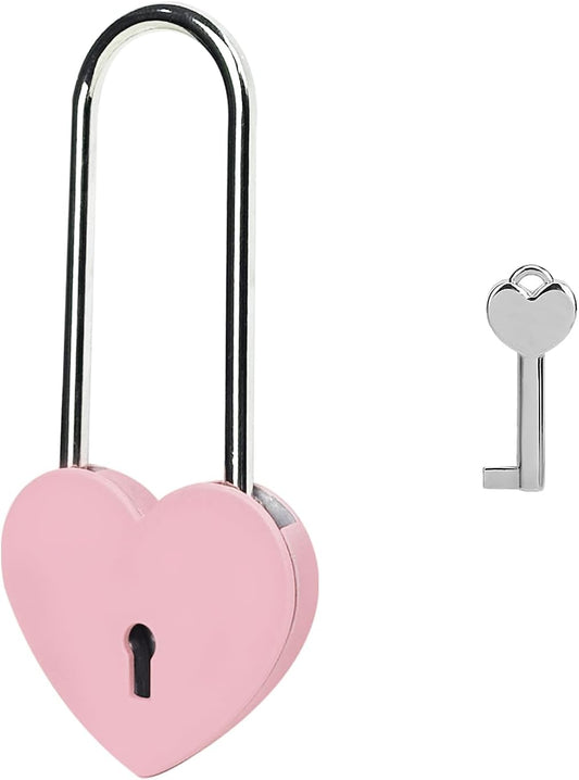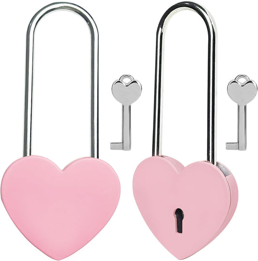 Pink and Rose Red Heart Lock with Key - 3.5 Inches, Matte Metal Love Lock for Lovelock Bridge, Jewelry Box, Diary Book