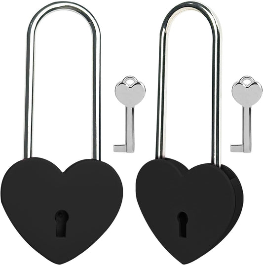 Pink and Black 3.5" Heart Lock with Key - Matte Metal Love Padlock for Lovelock Bridge, Jewelry Box, Diary Book