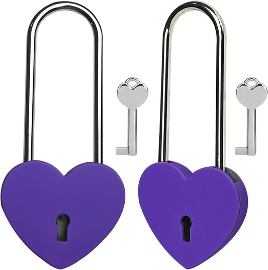 Pink and Purple Heart Lock with Key - 3.5 Inches Love Padlock for Lovelock Bridge