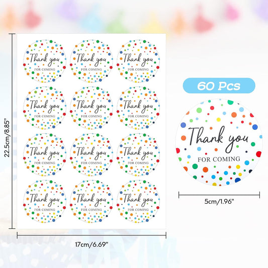 60Pcs Personalized Thank You Stickers with Colored Dots, 2" Round Self Adhesive for Wedding, Birthday, Baby Shower, Party - jijAcraft