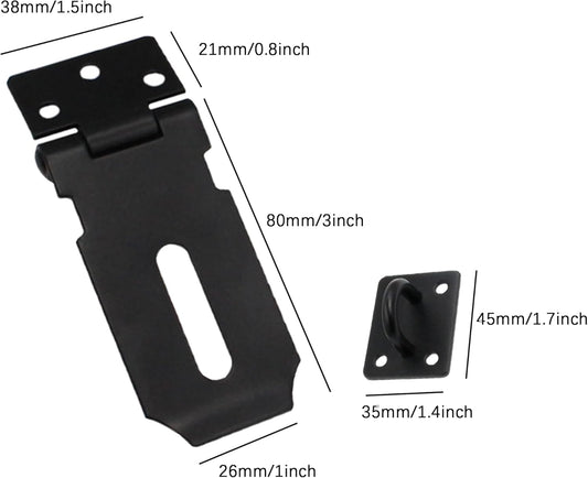 4 Pack HLMOptimo 3 Inch Stainless Steel Matte Black Door Lock Hasp Latch with Screws for Door Shed Cabinet