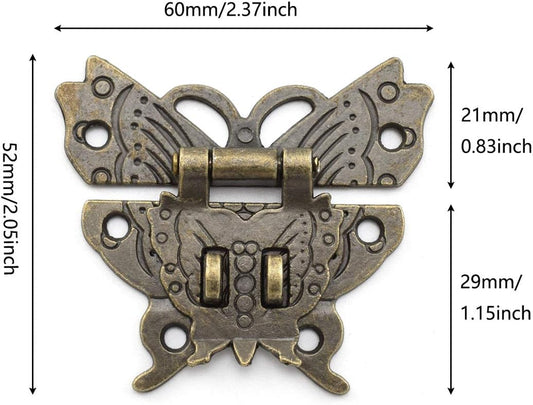 2-Pack Antique Butterfly Lock Catch Hasp for Jewelry Box Cabinet - Retro Bronze Zinc Alloy with Dual Padlock Hole