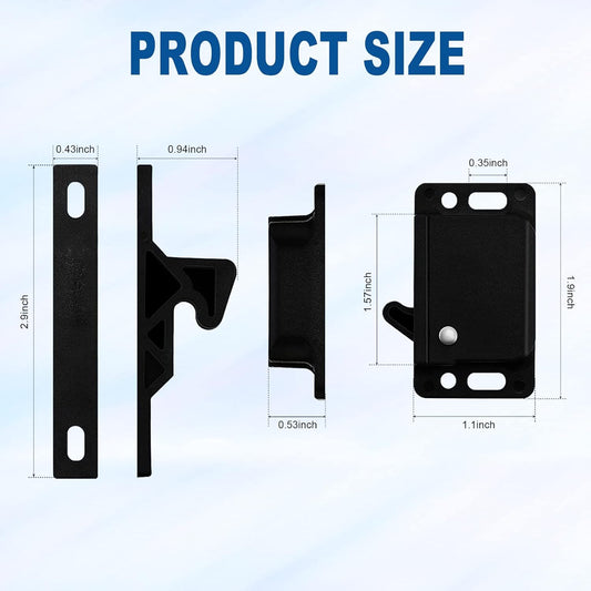 20 Pack RV Drawer and Cabinet Door Latch Set - 10 LB Pull Force Grabber Catches for RVs, Campers, Home, Office - Push Close Design with Mounting Screws