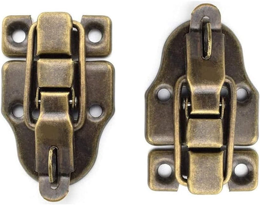 Set of 5 Duckbilled Hasp Iron Locks with Padlock Hole - Vintage Bronze Latch for Jewelry Box, Cabinet, Small Wooden Case, and Crafts