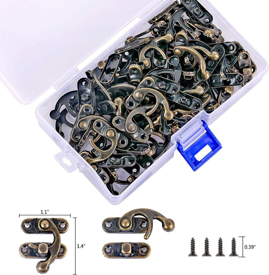 Bronze Wooden Cabinet Latch Hook Set - Antique Box Latch with 160 Screws - Right Latch Buckle Kit