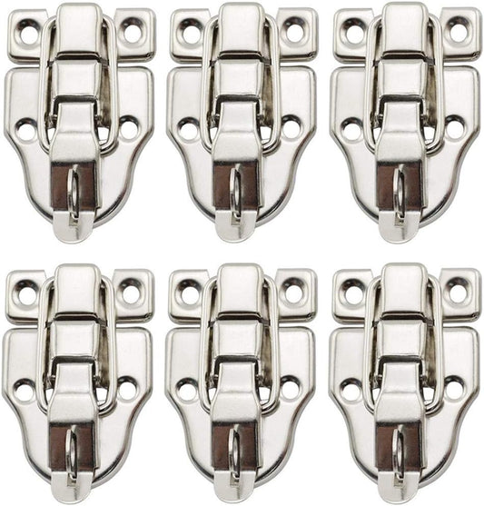 Set of 6 Duckbilled Hasp Latch Toggle Latches for Jewelry Boxes, Wooden Cases, and Furniture with Screws