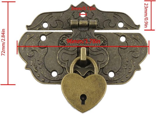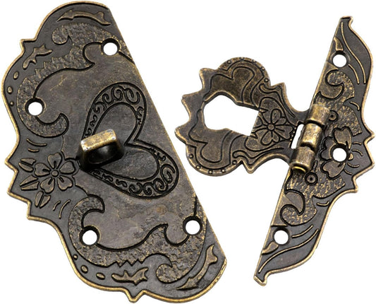 Set of 2 Antique Carved Decorative Buckle Door Latches with Heart-shaped Padlock for Furniture and Jewelry Boxes