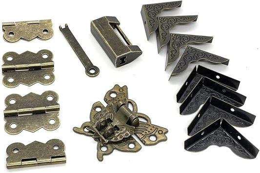 Vintage Antique Bronze Butterfly Hasp Latch Lock Kit for Wooden Jewelry Box Repair - Retro Design Butterfly Hinge & Corner Protectors