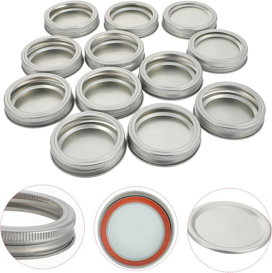 12 Pack Wide Mouth Mason Jar Lids Replacement Rings Bands - Silver Tinplate - for Canning Jars, Salad Mason Jars, BIUDECO