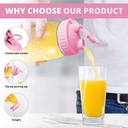 2 Pack Pink Wide Mouth Flip Cap Mason Jar Lids - Airtight, Leak-Proof, Convenient Pouring Spout