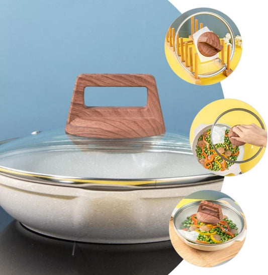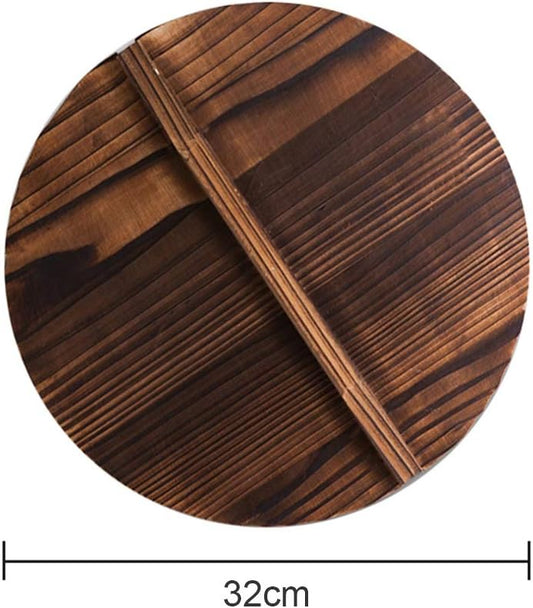 Wooden Lid for Cast Iron Wok - Forart Lid with Large Handles - 12.6/13.4/13.8/15 Inch Diameter