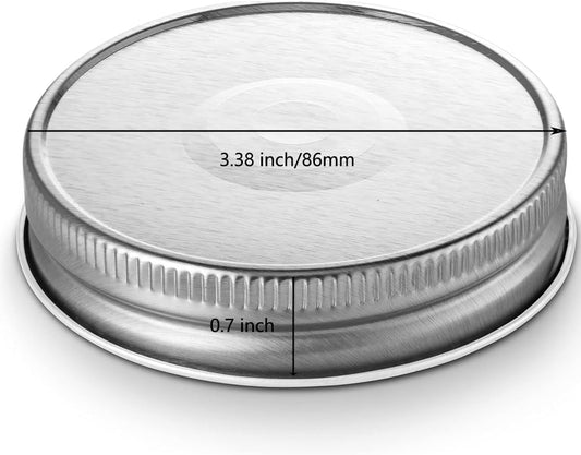 50 Pack Wide Mouth Mason Jar Lids for Large Mouth Jars - Leak Proof, Airtight Seal, 86mm Silver Metal Can Lids