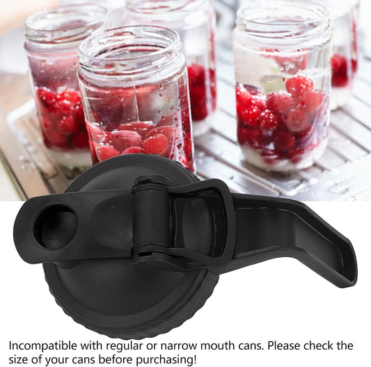 Black Wide Mouth Mason Jar Pour Spout Lid - Leak Proof Flip Cap with Handle for Easy Mess-Free Pouring