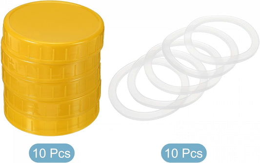Wide Mouth Plastic Mason Jar Lids, 10 Pack with Silicone Sealing Ring - Yellow