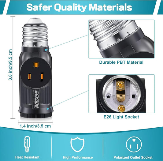 Polarized Light Socket Adapter for E26/E27 Bulbs - Converts Socket to Plug for Patio or Garage