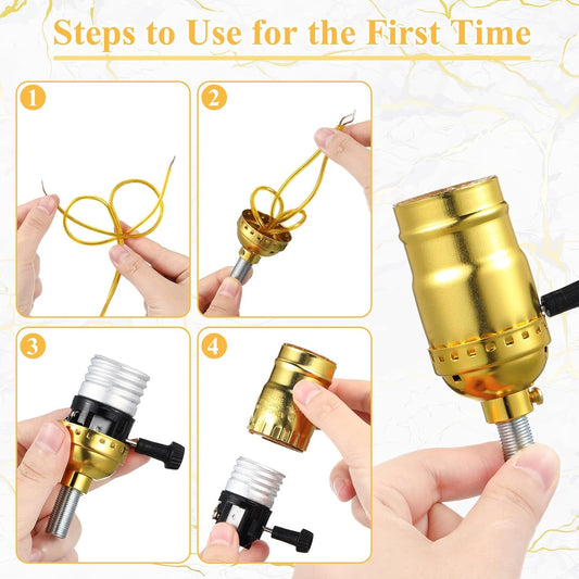 Gold Lamp Rewire Kit with 10ft Cord, 3-Way Socket, Essential Hardware - DIY Table/Floor Lamps Repair Kit