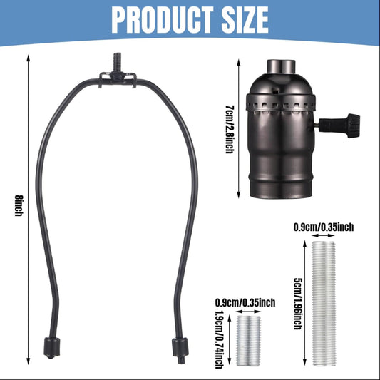 DIY Lamp Repair Kit with 8'' Harp, 12" Tube Pipe, 3 Way Socket, 8 ft Cord - Baquler 2 Set for Antique Table Centerpiece Design
