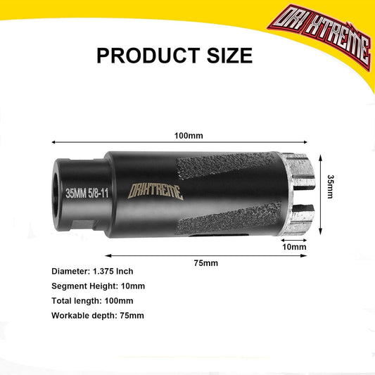 35mm ORIXTREME Diamond Core Drill Bits - 1-3/8 Inch Granite Hole Saw for Dry Drilling Concrete, Marble, Stone - 5/8-11 Thread