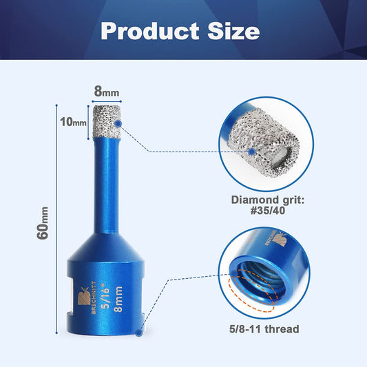 8mm 5pcs Diamond Core Drill Bit Set for Porcelain Tile Ceramic Marble Granite, BRSCHNITT Vacuum Brazed Hole Saw with 5/8-11 Thread - 5/16 Inch