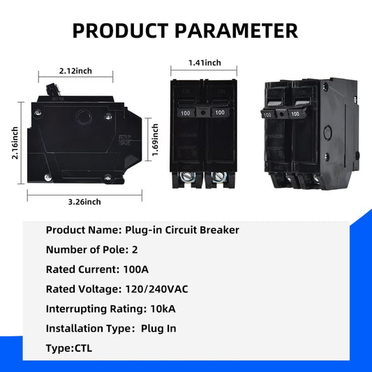 CNAODUN 100 Amp 2 Pole Circuit Breaker for 120/240VAC with 10KA Plug-in Mount