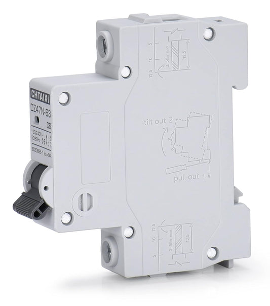 20 Amp AC Miniature Circuit Breaker, 1 Pole DIN Rail Mount Thermal Magnetic Trip MCB C20 with Solar AC Disconnect Switch