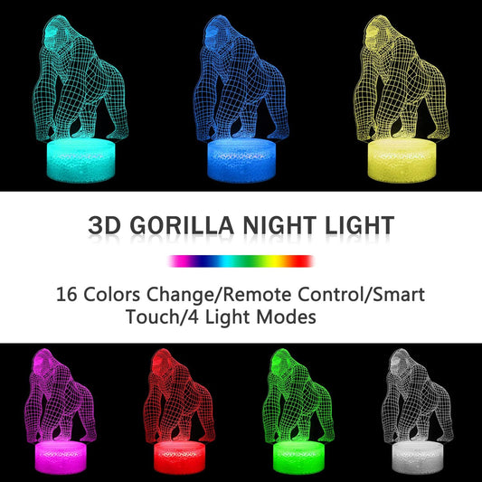 3D Gorilla Lamp for Kids - 16 Colors Changing Night Light Toy with Remote Control - Perfect Birthday & Christmas Gift for Boys, Girls, and Teens Age 2-9