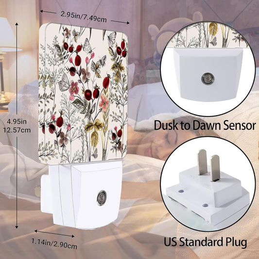 Vintage Flower Butterfly Night Light with Dusk to Dawn Sensors - Warm Nightlights for Bedroom, Bathroom, Kitchen - Ideal Gifts for Girls and Women