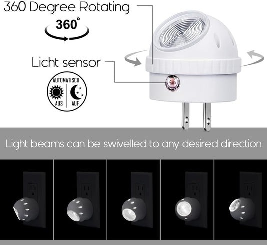 360° Rotation Neutral White LED Nightlights with Dusk to Dawn Sensor - 6 Pack for Bedroom, Hallway, Bathroom, Kitchen, Stairways, Corridor - Kids & Adults Friendly