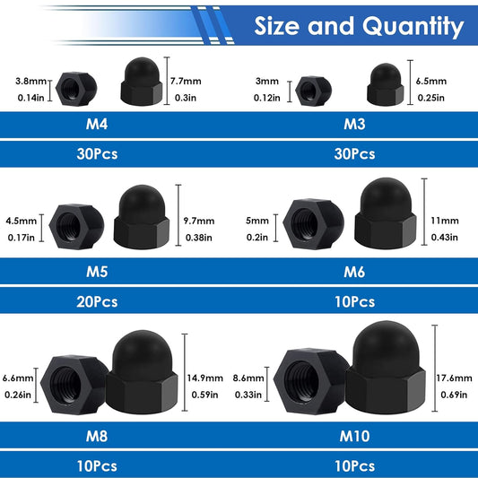 110Pcs Hex Acorn Cap Nuts Assortment Kit - M3 M4 M5 M6 M8 M10 Bolt Cover Caps - Nylon Screw Covers for Indoor and Outdoor Protection