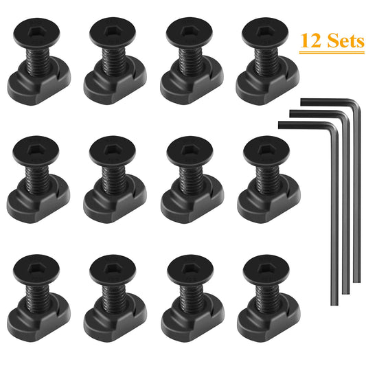 12-Piece FANGOSS Single Rail T-Nut and Screw Replacement Set with Short Screws, Nuts, and Allen Wrench - 10mm Length