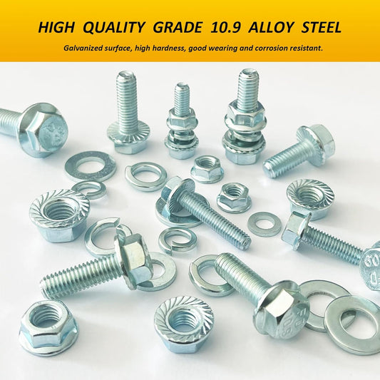 188PCS Heavy Duty Metric Hardware Nuts and Bolts Assortment Kit - Grade 8.8 Zinc Alloy Steel - 9 Sizes (Flange M6 M8 M10)