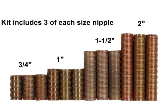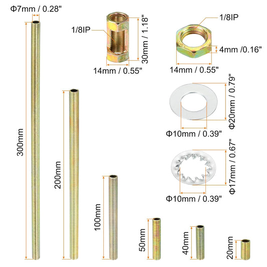 Lamp Pipe Kit with Lock Nuts and Washers for Chandelier Ceiling Light DIY - 6 Size Thread Fasteners Set