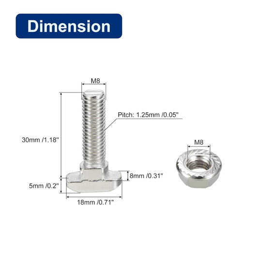 40 Sets of uxcell M8x30mm T Slot Drop-in Bolts & M8 Hex Flange Nuts for 40 Series Aluminum Profiles