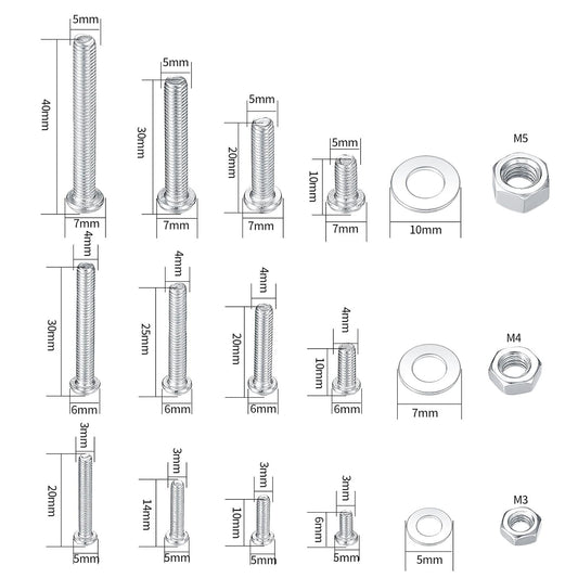 1180pcs Assorted Metric Nuts Bolts Washers Set M2-M5 Hex Socket Head Cap Screws Repair Fastener Assortment Kit