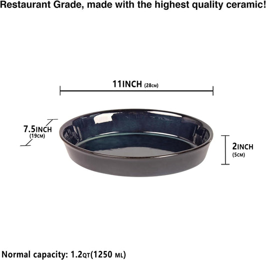 Set of 2 Oval Porcelain Pie Pans - 1.2 Quart Non-Stick Baking Dishes for Apple, Quiche, Pot Pies, and More - Oven Safe Dessert Plates 11 x 7.5 Inch